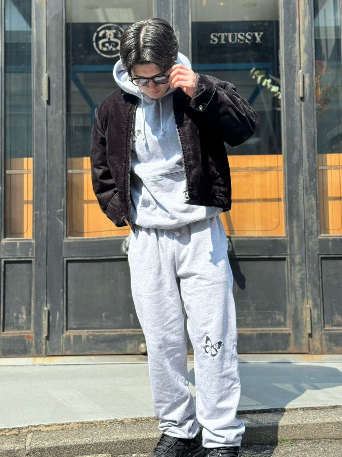 【ユリシスロゴパーカーグレー】とセットアップで着用可能なスウェットパンツです。