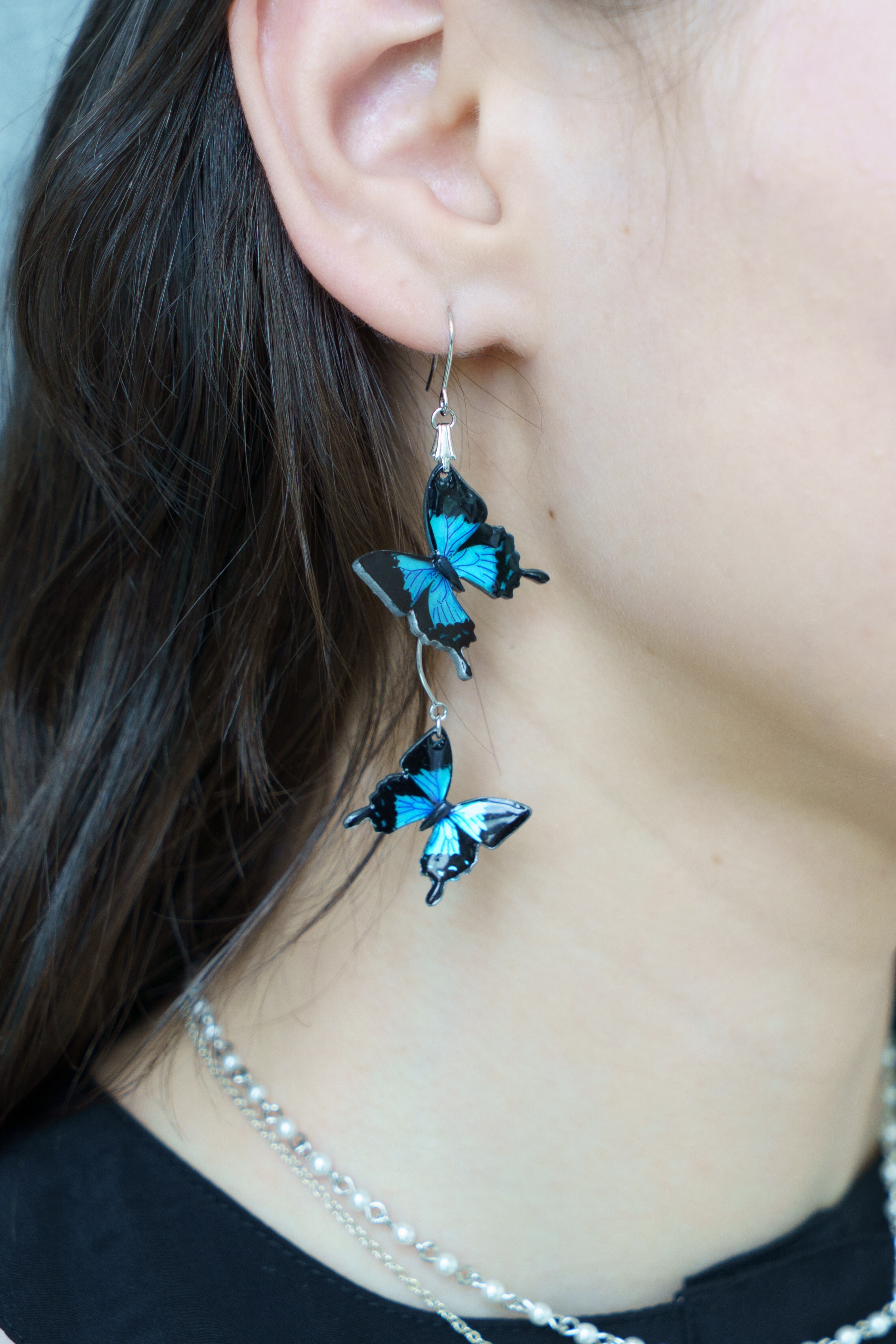 ピアス(イヤリング)にオオルリアゲハのモチーフを2連にあしらいました。